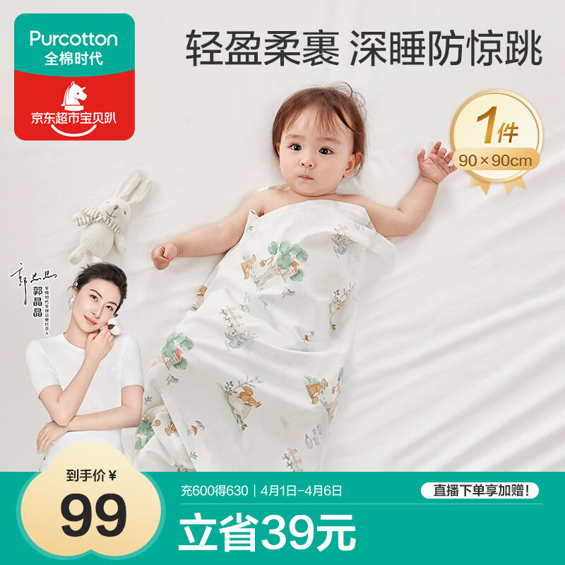 全棉时代婴儿针织包巾纯棉抱被新生儿薄空调被盖毯包被 童话树屋90×90cm
