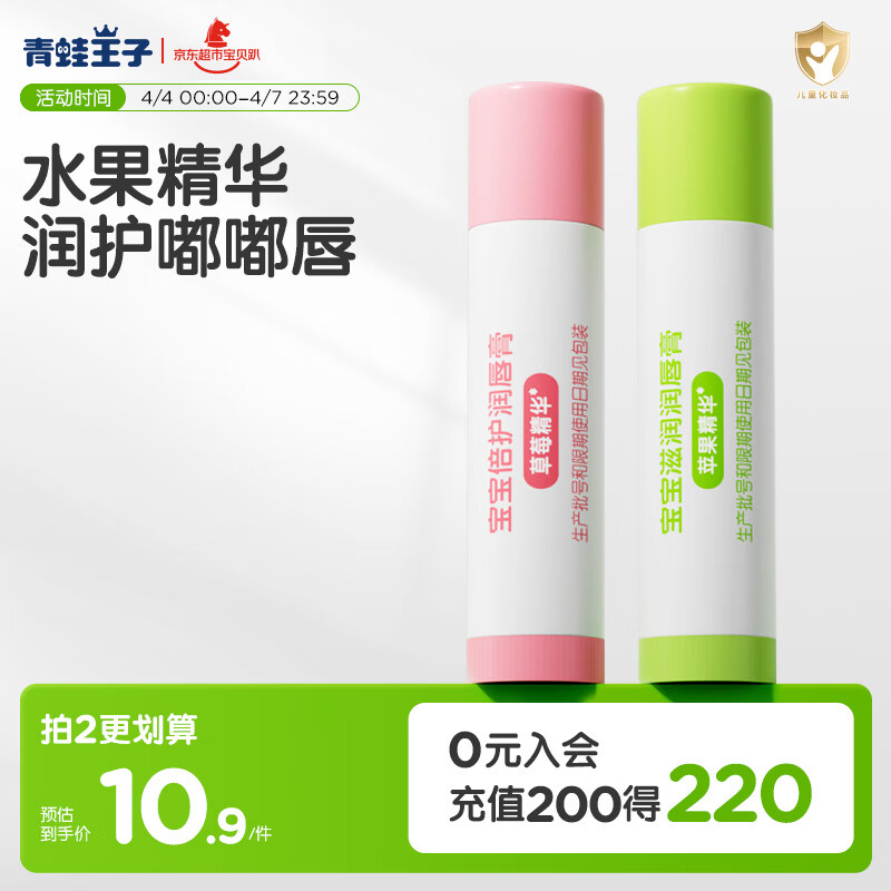 青蛙王子 润唇膏 儿童唇膏宝宝唇膏护唇膏 防干裂防脱皮补水润唇保湿4g*2