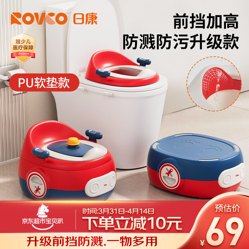 日康(rikang)儿童马桶 宝宝坐便器便盆加高前挡 PU软垫三合一功能 红色X2004-9