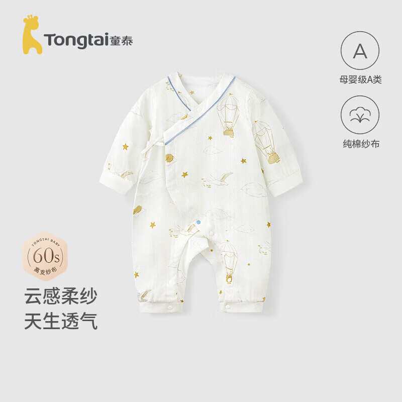 童泰(TONGTAI)婴儿连体衣春秋季纯棉纱布男女宝宝衣服哈衣爬服睡衣蓝色90cm