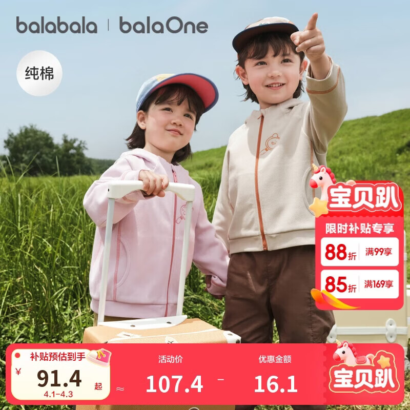 巴拉巴拉童装宝宝外套男童衣服女童连帽上衣2025秋装运动户外208325105208