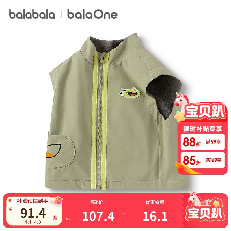 巴拉巴拉童装宝宝马甲男女童2025秋装防泼水加绒外套立领上衣208325101201