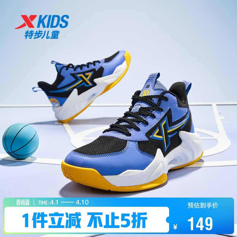 特步(XTEP)儿童童鞋风猎篮球鞋实力街篮运动鞋 黑/长春花篮紫 35码