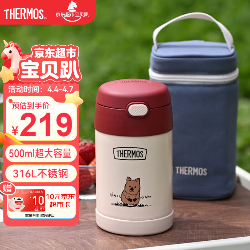 膳魔师(THERMOS)儿童保温杯饭盒316L不锈钢宽口辅食焖烧杯罐勺带罐套学生上学TCFG