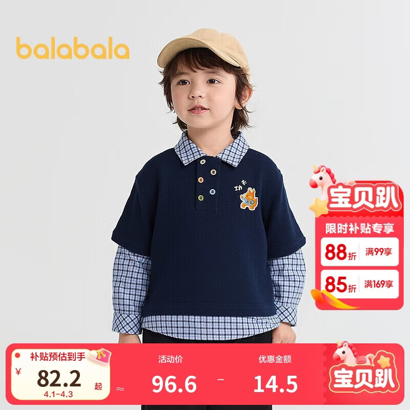 巴拉巴拉童装男童卫衣格纹拼接假两件长袖上衣2025秋装学院风209325121101