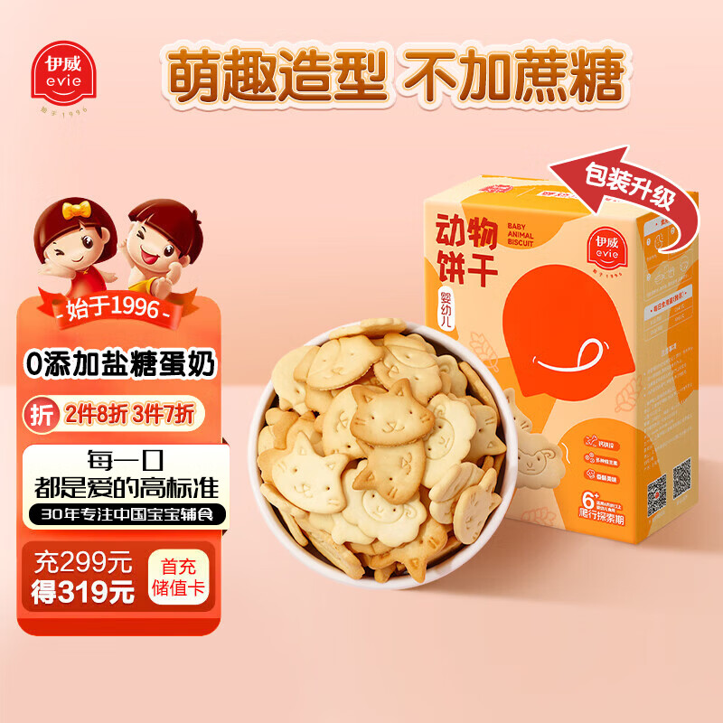 伊威(Eastwes)宝宝零食 婴幼儿动物饼干80克(4袋) 不添食盐蔗糖奶粉鸡蛋6个月+