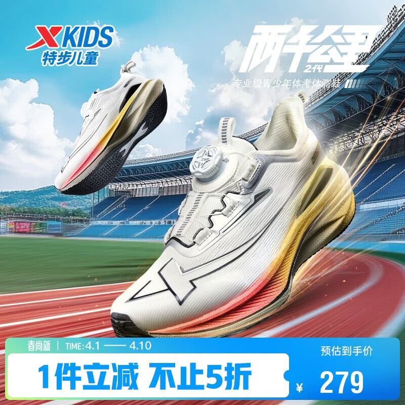 特步童鞋儿童男童2000公里二代新升级马拉松跑鞋 帆白/银色 37