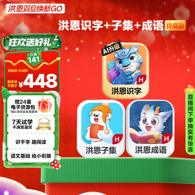 洪恩识字+子集+成语App会员包早教启蒙男女孩儿童生日开学礼物3-6岁