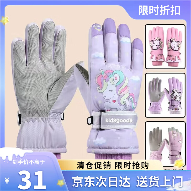 安丹迪(Adandyish)儿童玩具滑雪手套 保暖冬季自行车骑行电动车加厚 紫粉图案随机
