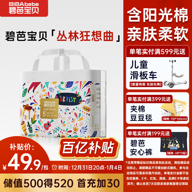 碧芭宝贝丛林狂想曲拉拉裤XL码34片(12-17kg)学步裤超薄 秋冬不闷
