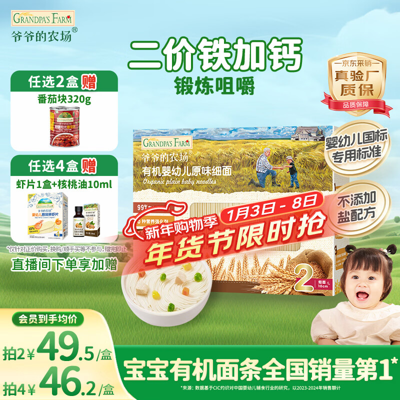 爷爷的农场有机婴幼儿原味细面240g宝宝辅食国家婴标婴儿面条钙铁锌6-12个月