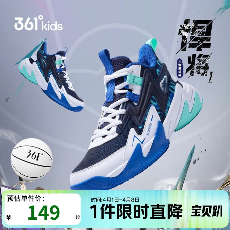 361°悍将 儿童篮球鞋24四季青少年实战训练硬底耐磨篮球鞋 蓝35