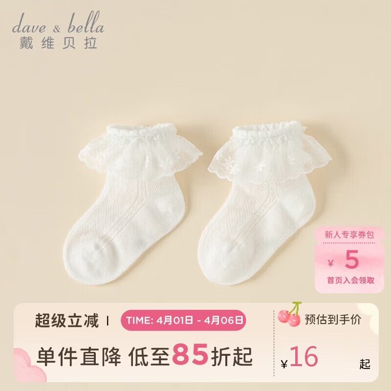 戴维贝拉儿童袜子春夏女童弹力短袜宝宝婴幼儿甜美公主袜