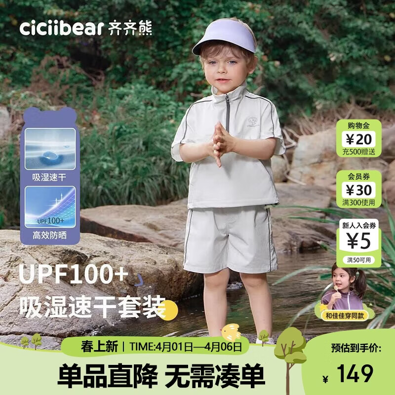 齐齐熊[UPF100+凉感]齐齐熊宝宝防晒短袖套装男童春夏2025新款儿童夏装
