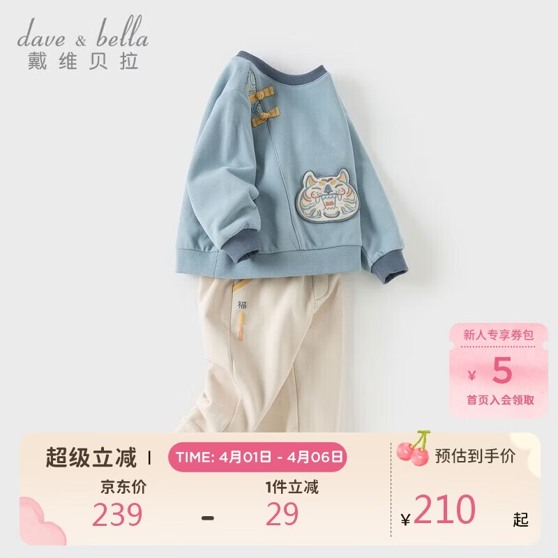 戴维贝拉儿童国风长裤套装男童卫衣裤子秋装两件套男宝宝