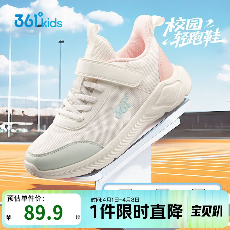 361°儿童运动鞋男女童(3-12岁)防撞鞋头密网休闲跑鞋 白36
