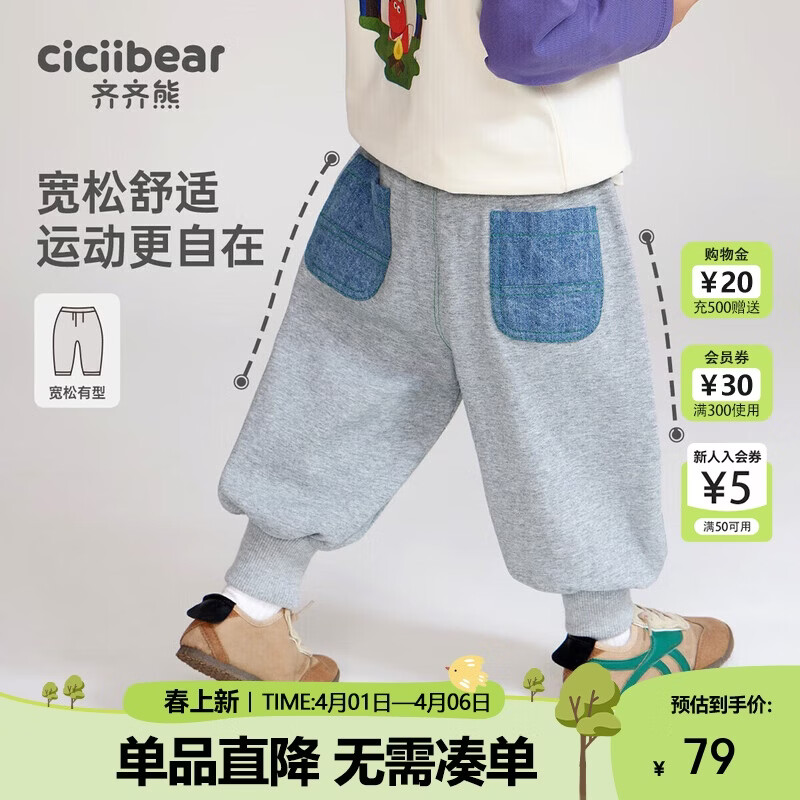 齐齐熊男童卫裤春秋款男宝宝裤子休闲裤2025新款儿童长裤