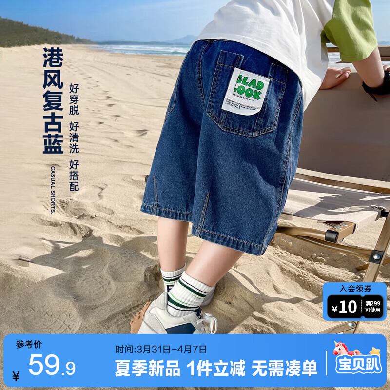 左西男童牛仔短裤儿童裤子2026新款夏装中裤五分裤 深牛仔色 160