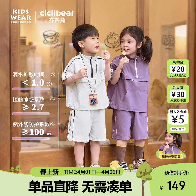 齐齐熊[UPF100+凉感]齐齐熊宝宝防晒短袖套装男童春夏2025新款儿童夏装
