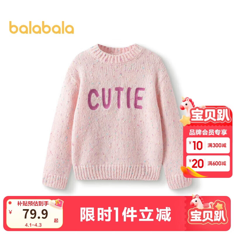 巴拉巴拉童装毛衫2024年秋冬圆领套头撞色毛衣女童宽松甜美潮208424103011