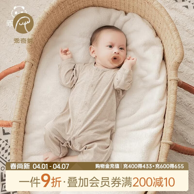 乖奇熊宝宝连体衣夏季薄款长袖空调服天竹纤维婴儿哈衣爬爬服弹力春秋