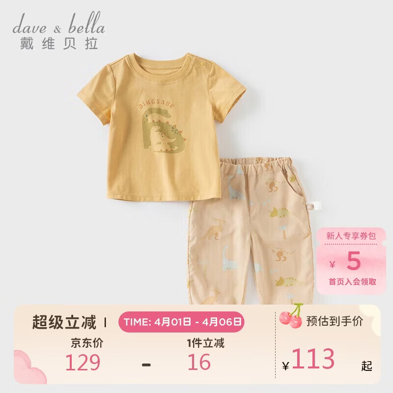 戴维贝拉男童宝宝短袖T恤两件套夏装儿童抗菌防蚊裤套装