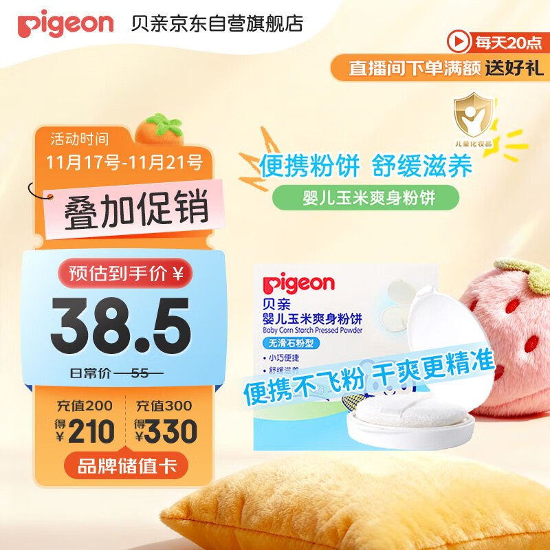 贝亲爽身粉饼痱子粉婴儿专用宝宝新生儿童不含滑石粉30g