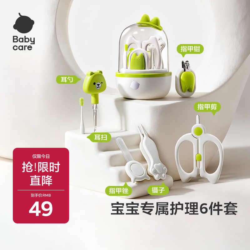 babycare婴儿指甲剪套装宝宝指甲刀新生儿0岁+可视耳勺6件套【新老混发】