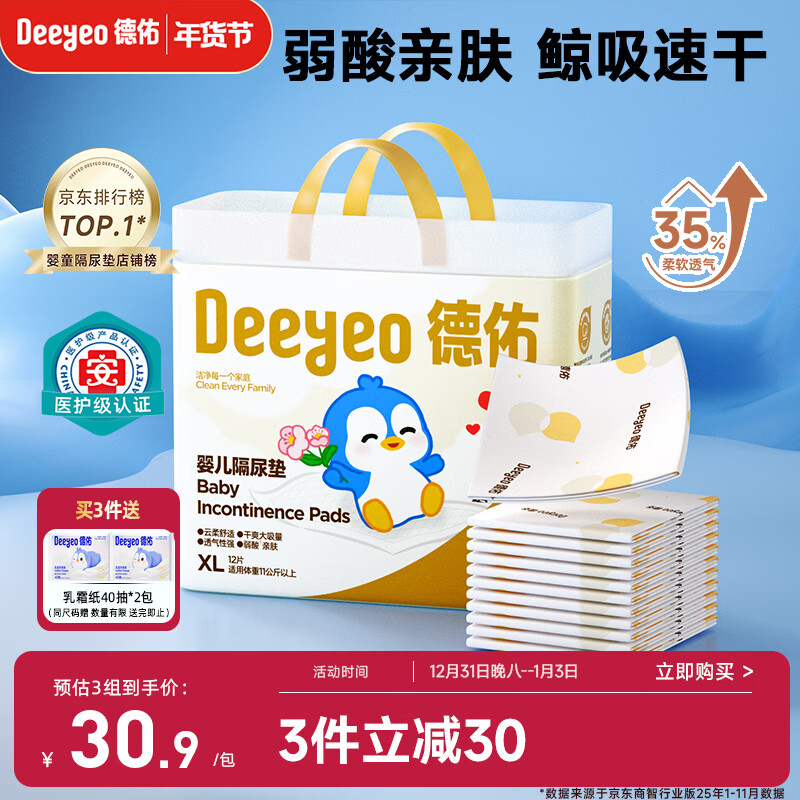 德佑 婴儿一次性隔尿垫大号护理垫12片60*90cm护理垫产褥垫透气不反渗