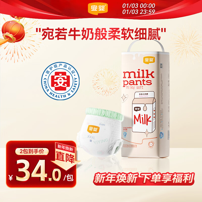 宜婴牛奶小内裤3XL32片轻薄宝宝拉拉裤尿不湿【品牌直供 安心品质】