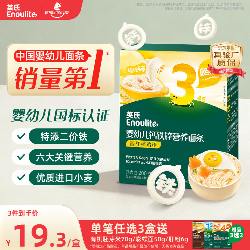 英氏婴幼儿面条西红柿鸡蛋味200g 辅食宝宝婴儿早餐营养长直面 真验厂