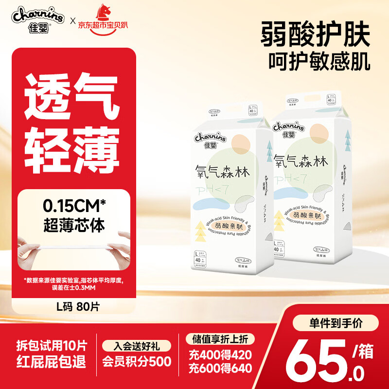 佳婴氧气森林纸尿裤L码80片(9-14KG)超薄婴儿尿不湿男女宝宝通用