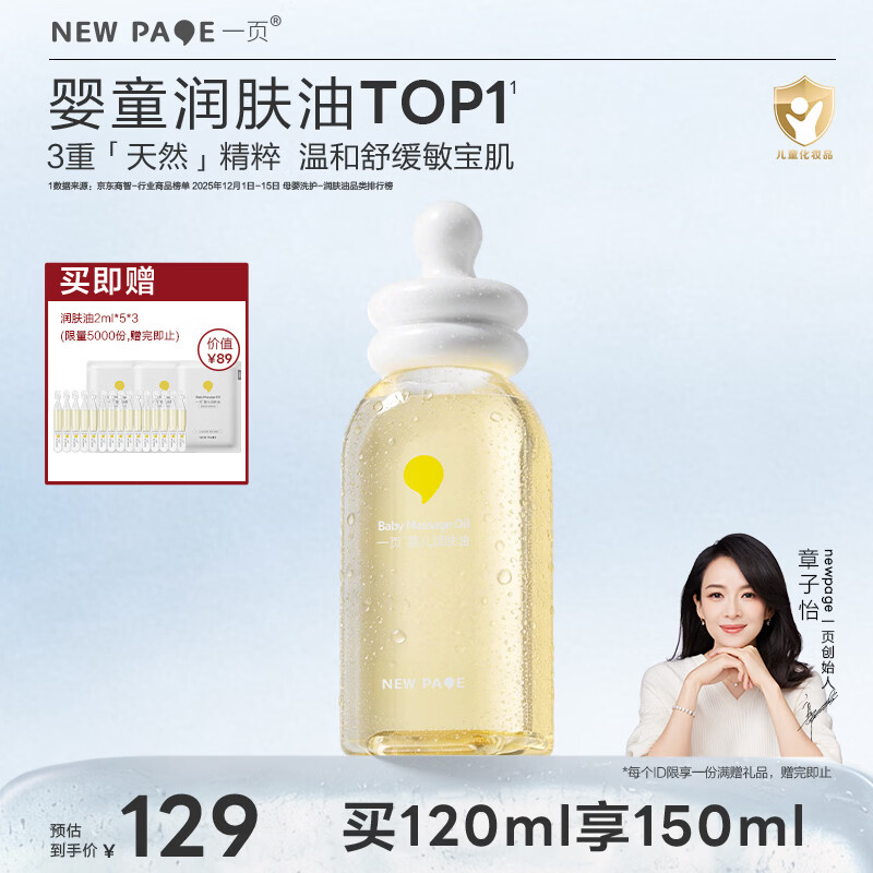 一页婴儿抚触油宝宝润肤油新生儿按摩油120ml易推开不油腻按摩全身