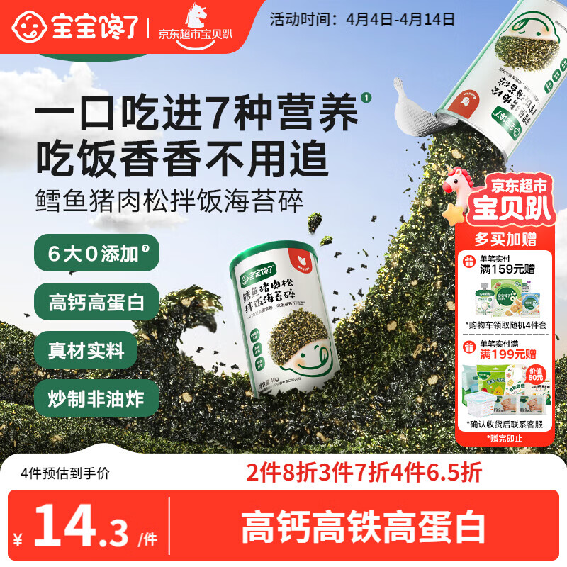 宝宝馋了鳕鱼海苔碎猪肉松40g儿童佐餐拌饭辅食无添加享1岁婴幼儿宝宝食谱
