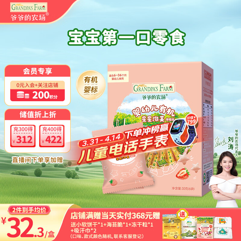 爷爷的农场有机婴幼儿星星泡芙草莓味30g 宝宝儿童零食婴儿零食6-12个月