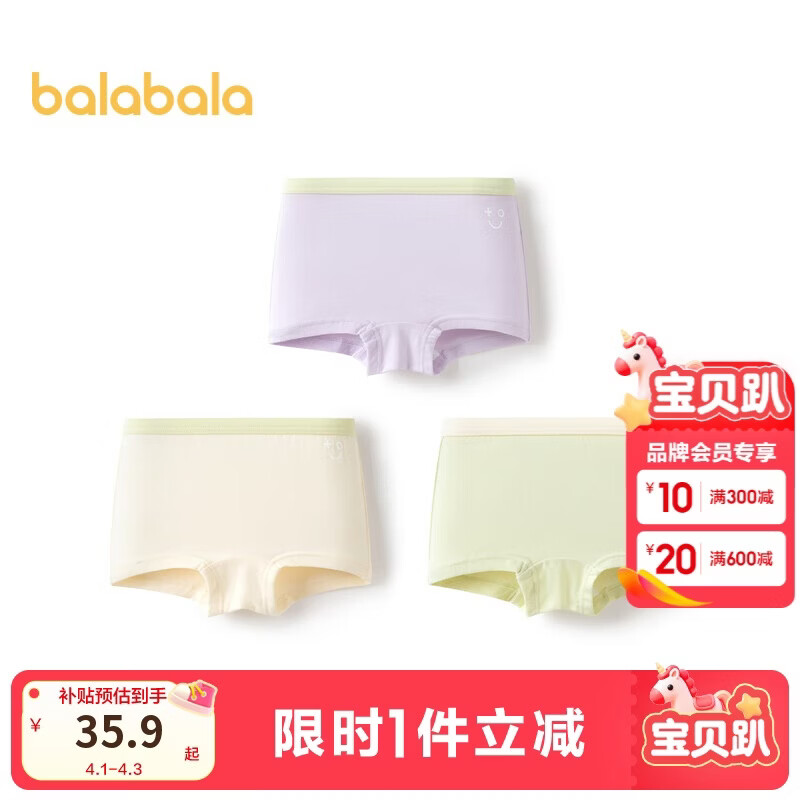 巴拉巴拉儿童内裤棉女童平角短裤小童大童四角裤不夹pp三条装209925170003