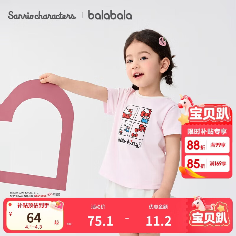 巴拉巴拉儿童短袖女童t恤夏2025款【hellokittyIP商场同款】202225117020