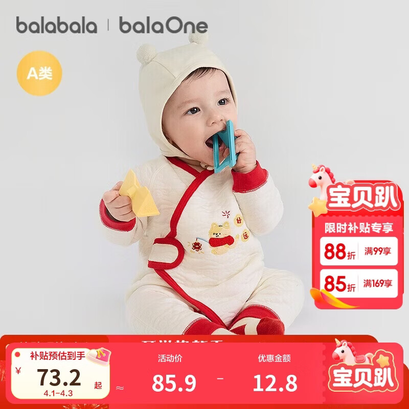 巴拉巴拉童装婴儿连体衣新生儿宝宝满月爬服夹棉加厚萌趣男童女童婴童衣服