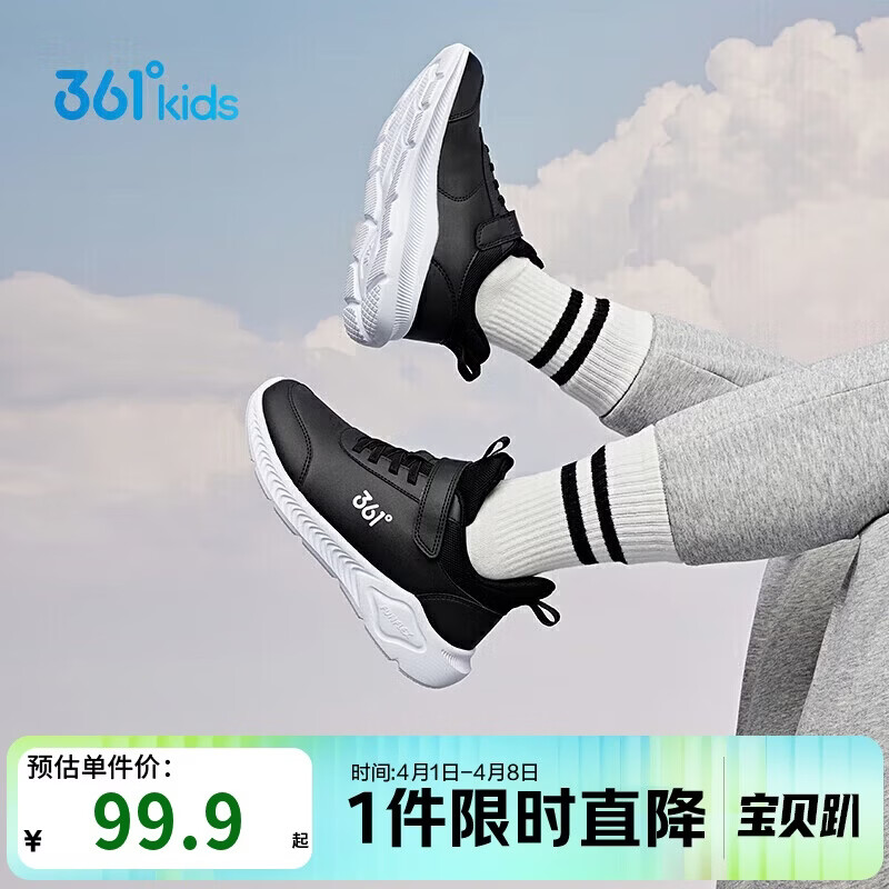 361°童鞋 儿童运动鞋25冬季男女童3-14岁皮革校园跑鞋 黑37