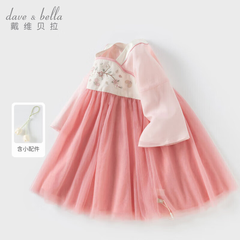 戴维贝拉女童连衣裙春装儿童国风汉服裙子中大童网纱裙