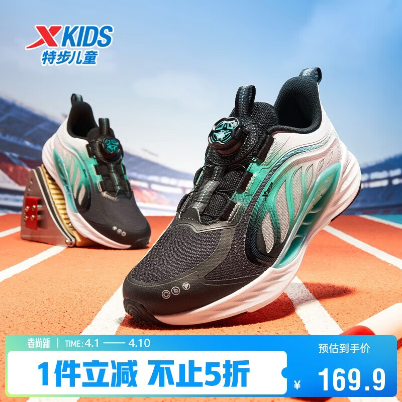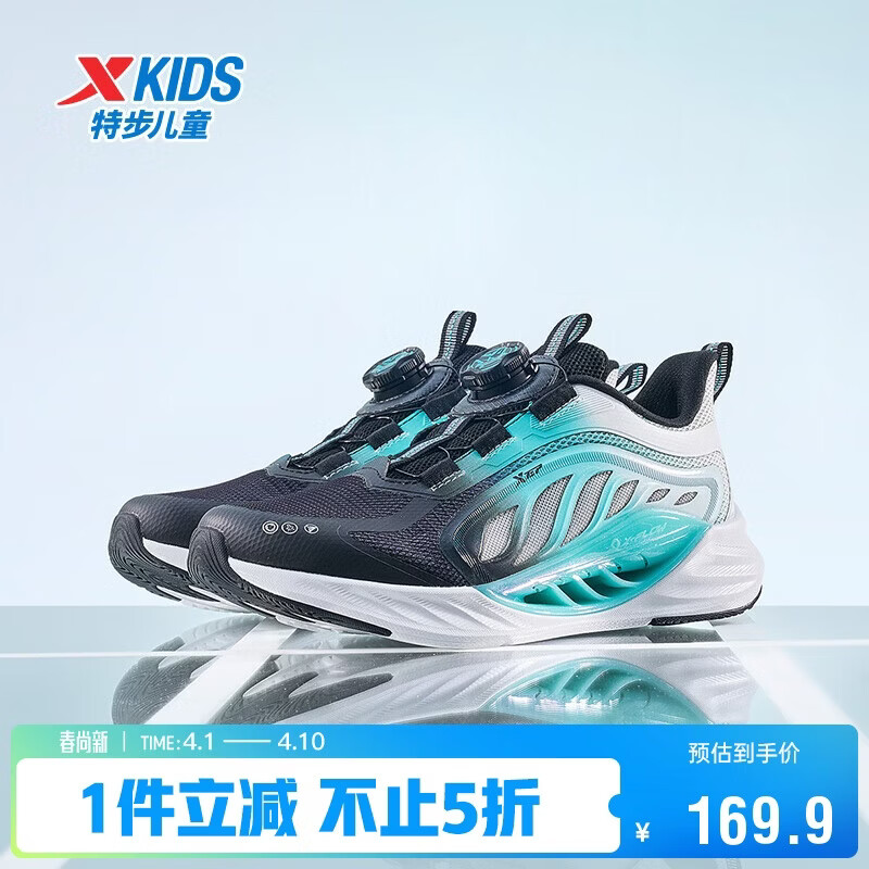 特步(XTEP)【氢风8.0护足跑鞋】儿童童鞋透气旋转扣跑鞋 黑/极光绿 35