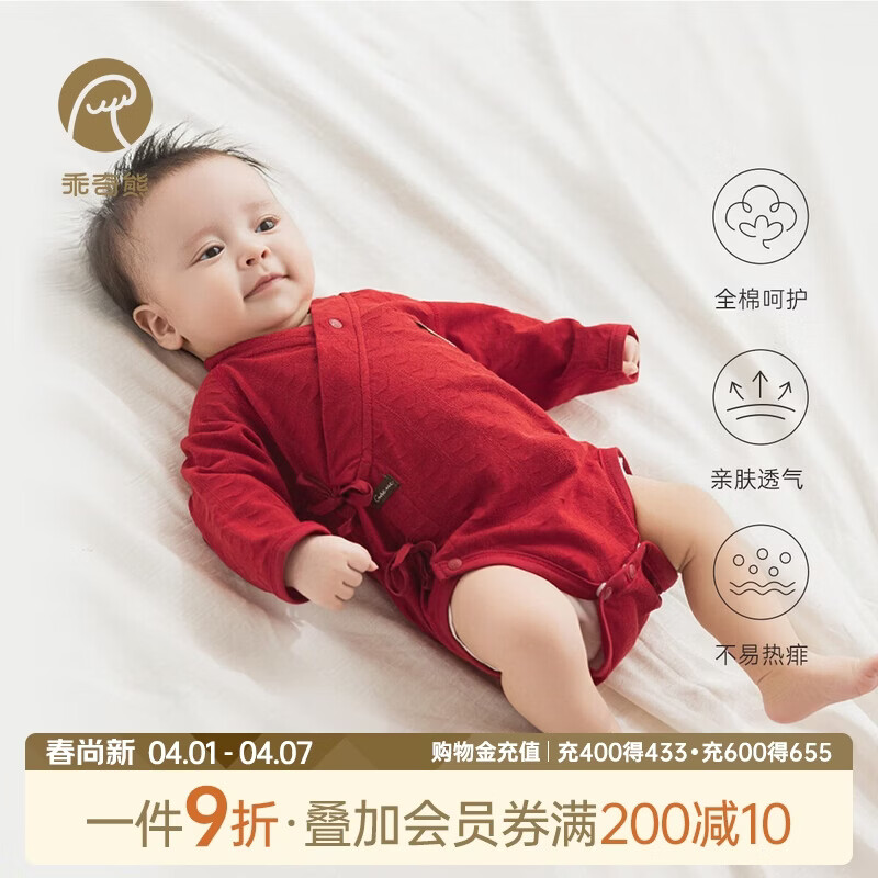 乖奇熊新生儿纯棉连体包屁衣红色满月夏季宝宝和尚服三角哈衣薄款春秋