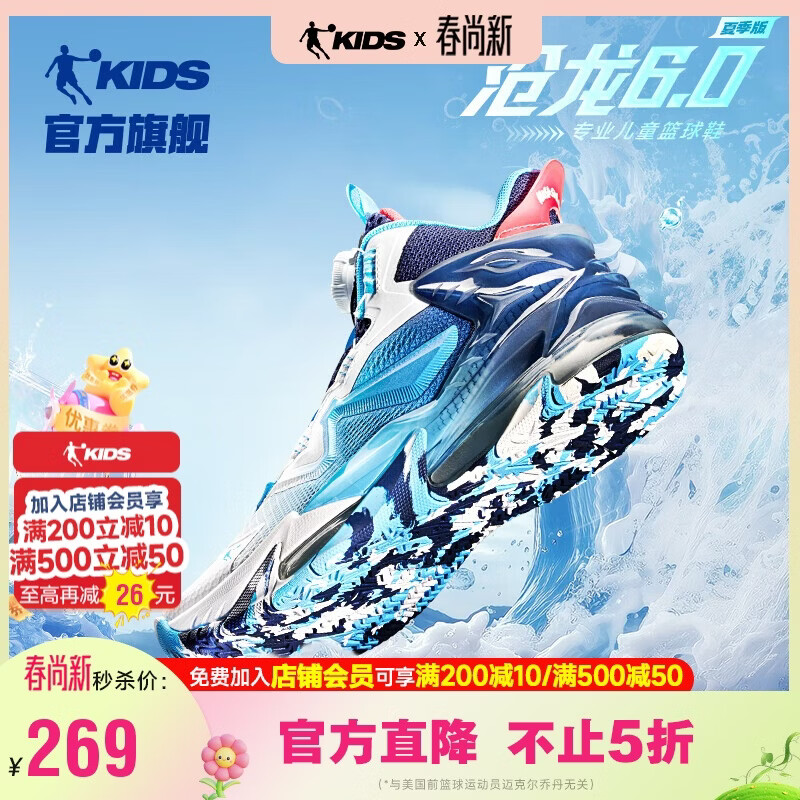 乔丹儿童篮球鞋男大童【沧龙6.0】夏季旋钮扣运动鞋 沉静蓝/鲲鹏蓝 37