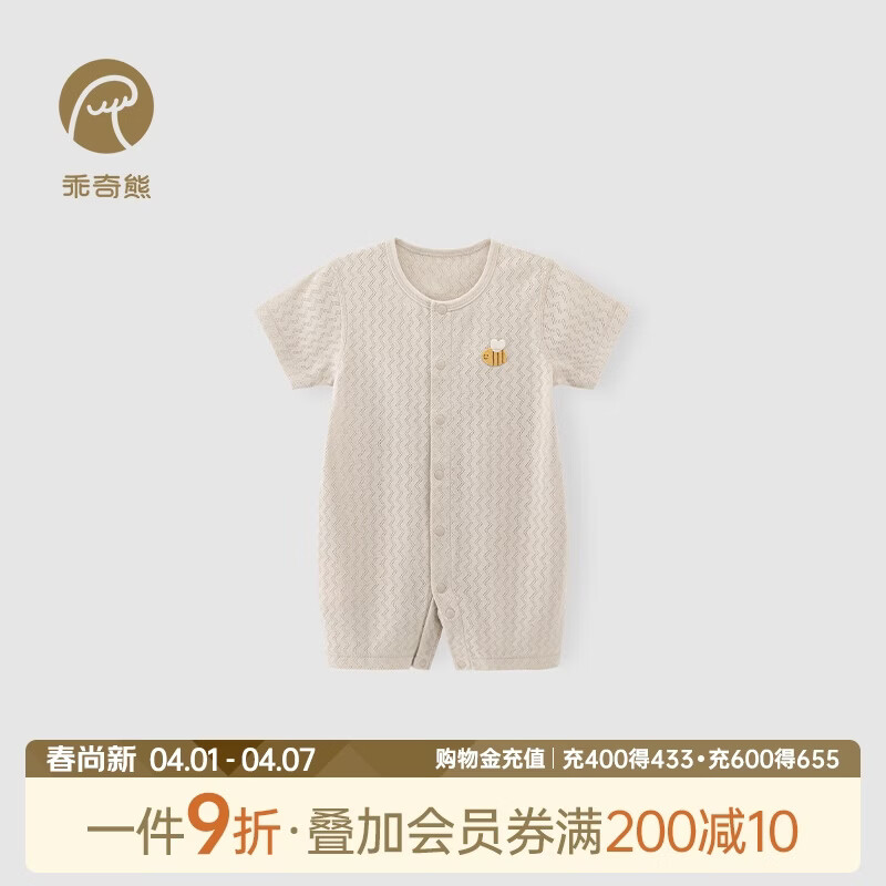 乖奇熊宝宝夏季短袖连体衣薄款透气婴儿纯棉睡衣贴身居家哈衣新生儿爬服