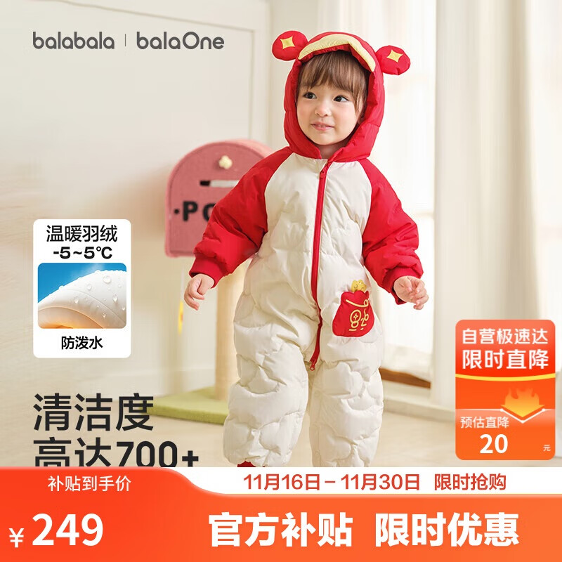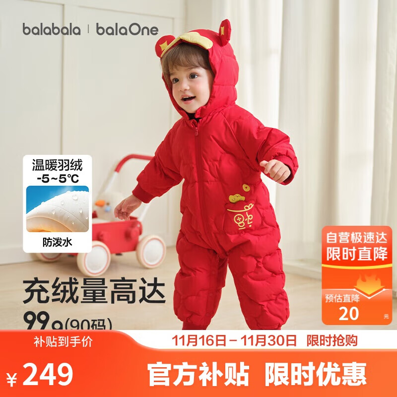 巴拉巴拉童装婴儿连体衣羽绒服男女童2025冬装哈衣国风造型萌208425120207