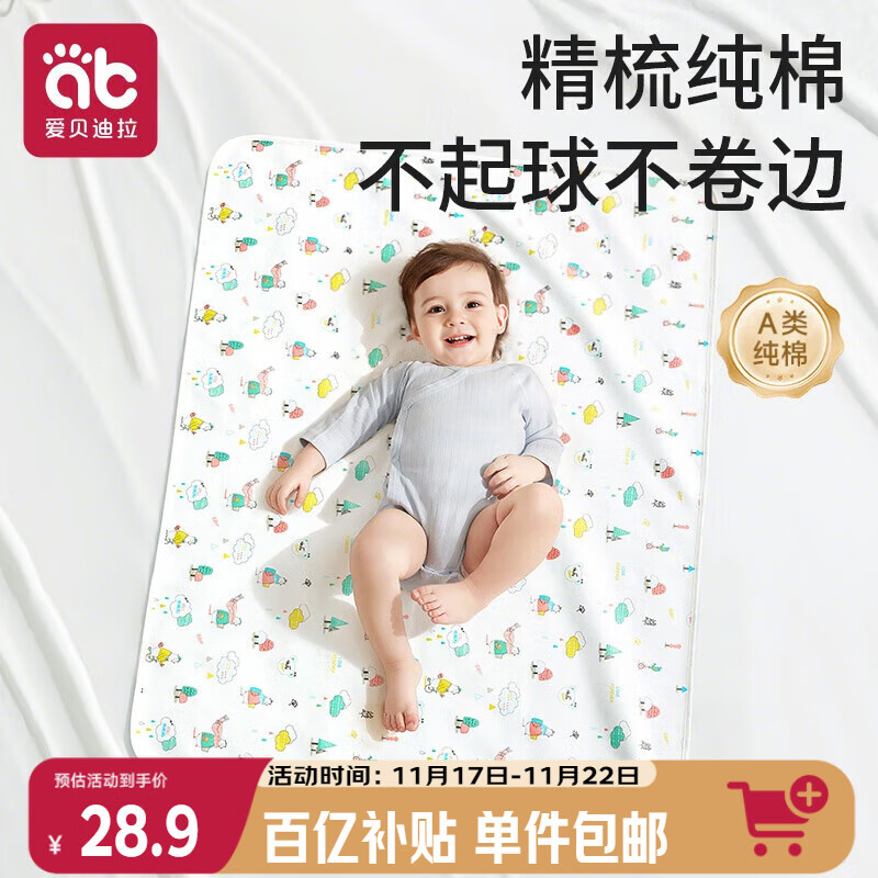爱贝迪拉(AIBEDILA)婴儿隔尿垫可洗防水纯棉透气宝宝新生用品超大号姨妈垫防漏80*100