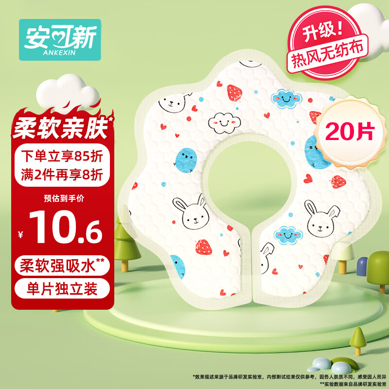 安可新 婴幼儿一次性围嘴【20片】可旋转婴儿免洗围兜 独立装 兔子款