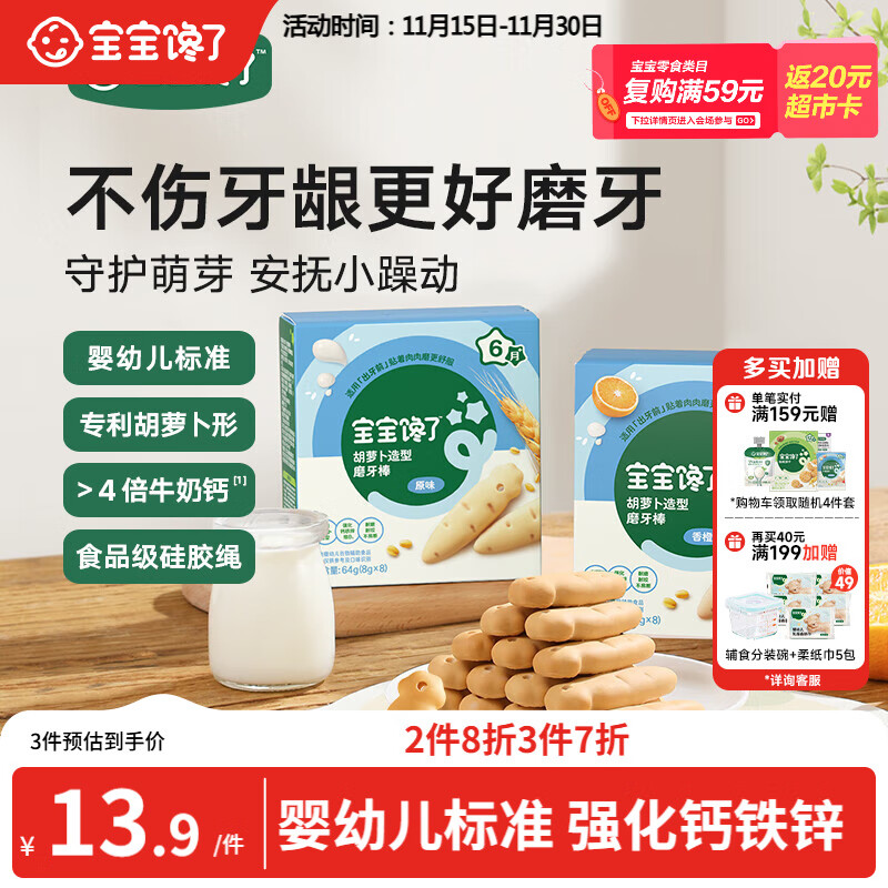宝宝馋了婴幼儿辅食磨牙棒 婴儿宝宝零食辅食磨牙饼干 带绳64g 6月+