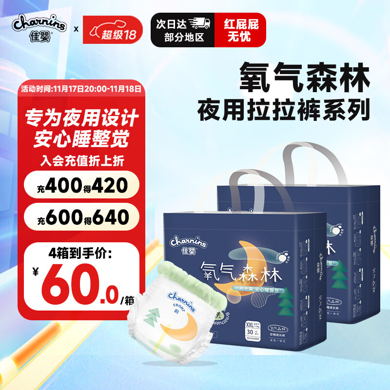 佳婴氧气森林夜用拉拉裤XXL码60片(15KG+)尿裤婴儿尿不湿防漏夜用