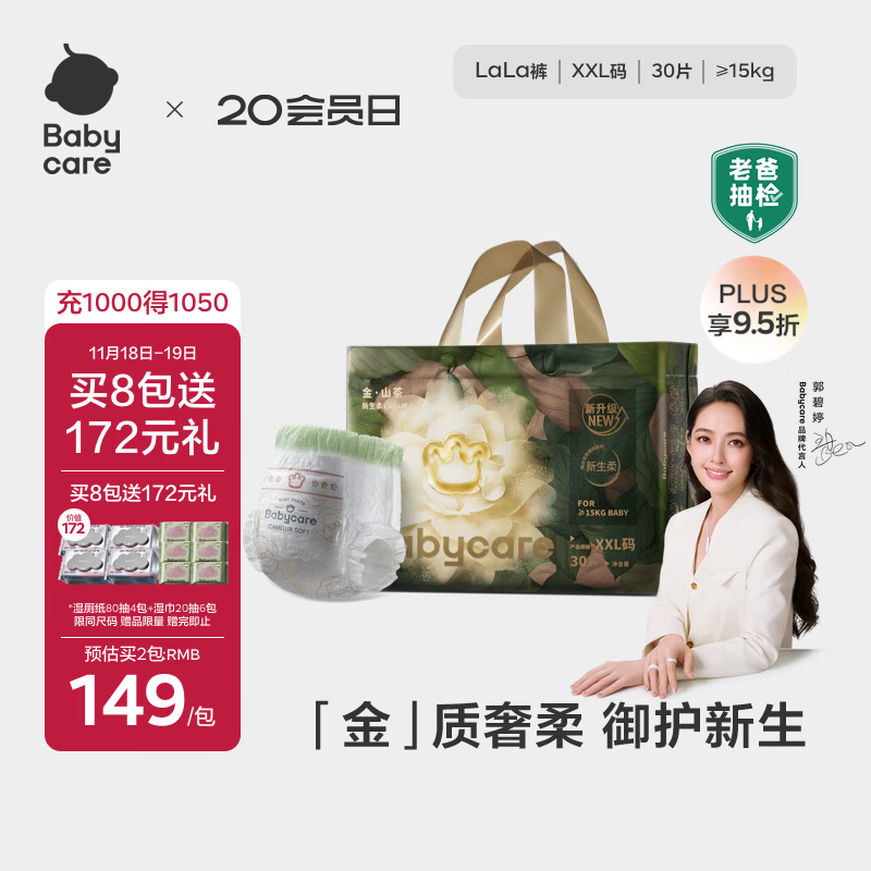 babycare金山茶花拉拉裤XXL30片(>15kg)婴儿尿不湿超薄透气新生柔花苞裤